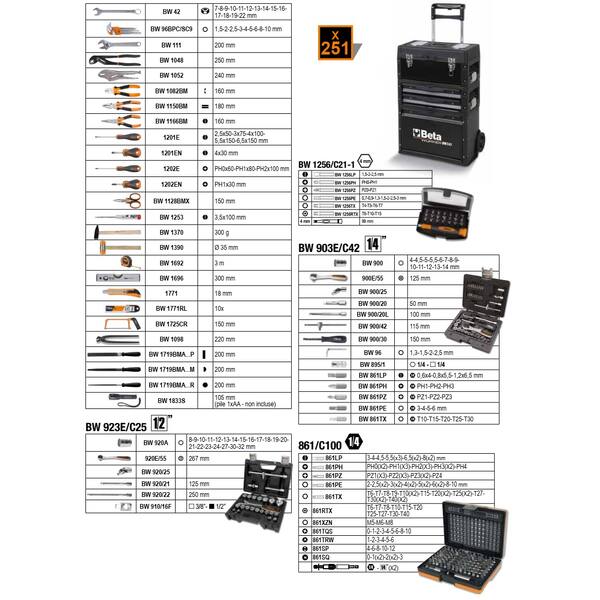 Beta Worer Trolley portautensili BW C43 con assortimento di 212 utensili universali