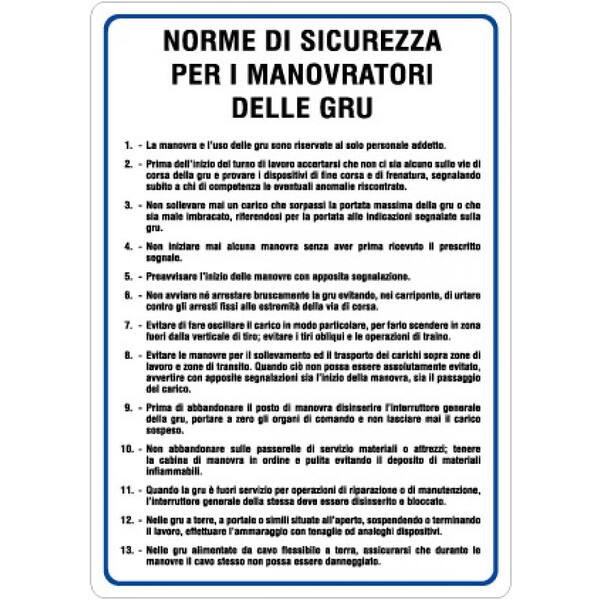 Cartello in alluminio NORME USO GRU