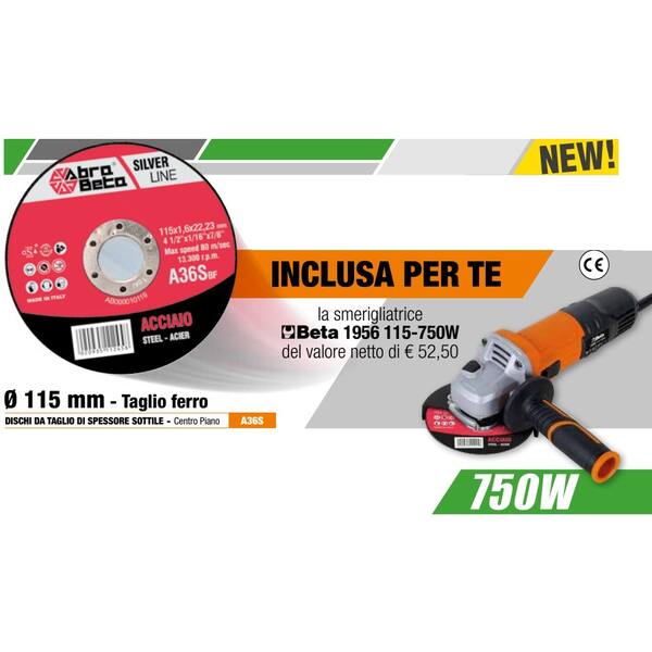 Kit 300 Dischi taglio ferro centro piano d.115x1,2 A36S + Smerigliatrice 1956 115-750W